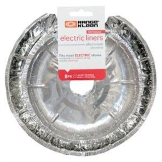 Electric Stove Foil Liners are perfect for keeping electric stoves clean from spills and lengthen the life of drip pans. Heavy duty aluminum liners can be cut to size. Package contains: (4) 8 In. diameter liners and (4) 6.4 In. diameter liners. Interior circle measures 1.375 In. diameter.