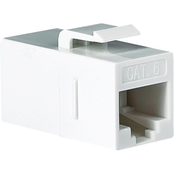 CAT 5E/6 in-line coupler. Ideal for use with computers, HDTVs, and Blu-ray players. Durable plastic construction.