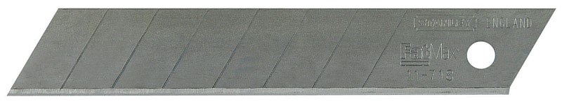 Ideal for cutting drywall, styrofoam, insulation, foam backed carpet, reinforced carpet, linoleum, cork, tar paper, house wrap. Induction hardened. 25% longer life based on average values in comparison to standard Stanley snap-off blades. 0.05mm thickness. 8 cutting points per blade. Fits all Stanley 18mm snap-off knives. Fits Olfa L-series snap-off knives. 10 blades in plastic storage case.