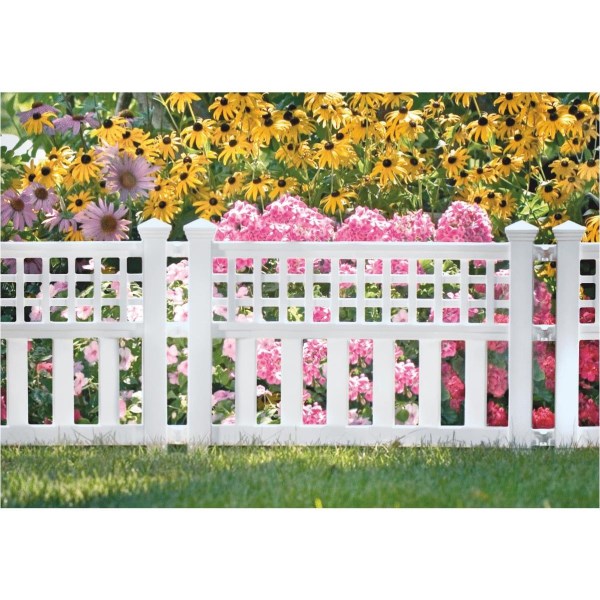 Durable resin decorative garden border fence. Panel dimensions: 24 In. W. x 20-1/2 In. H. x 1-1/2 In. D. Ground level height: 14-1/2 In.